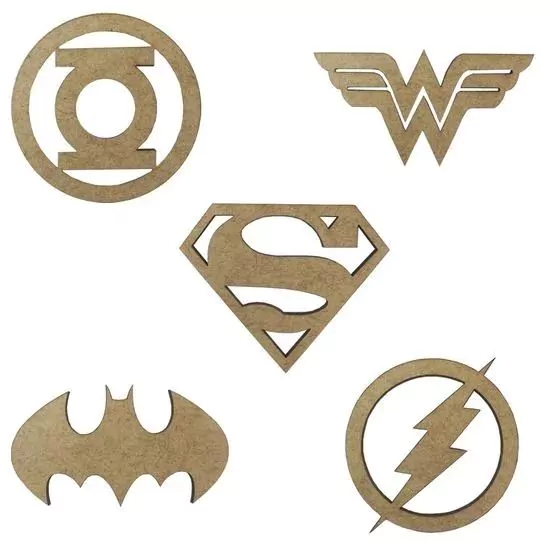 El Pack de Apliques en MDF crudo, con diseño de Súper Héroes, viene con 5 piezas.