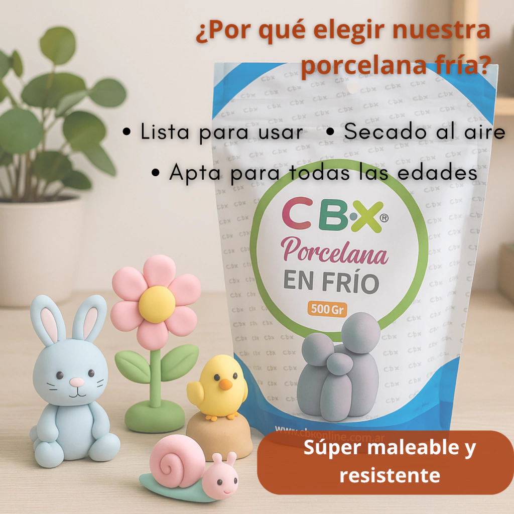 Descubrí la Porcelana en frío CBX, una masa para modelar ideal para tus proyectos de manualidades y artesanía. Su textura suave y maleable permite crear figuras detalladas y duraderas, perfectas para decorar, regalar o vender.